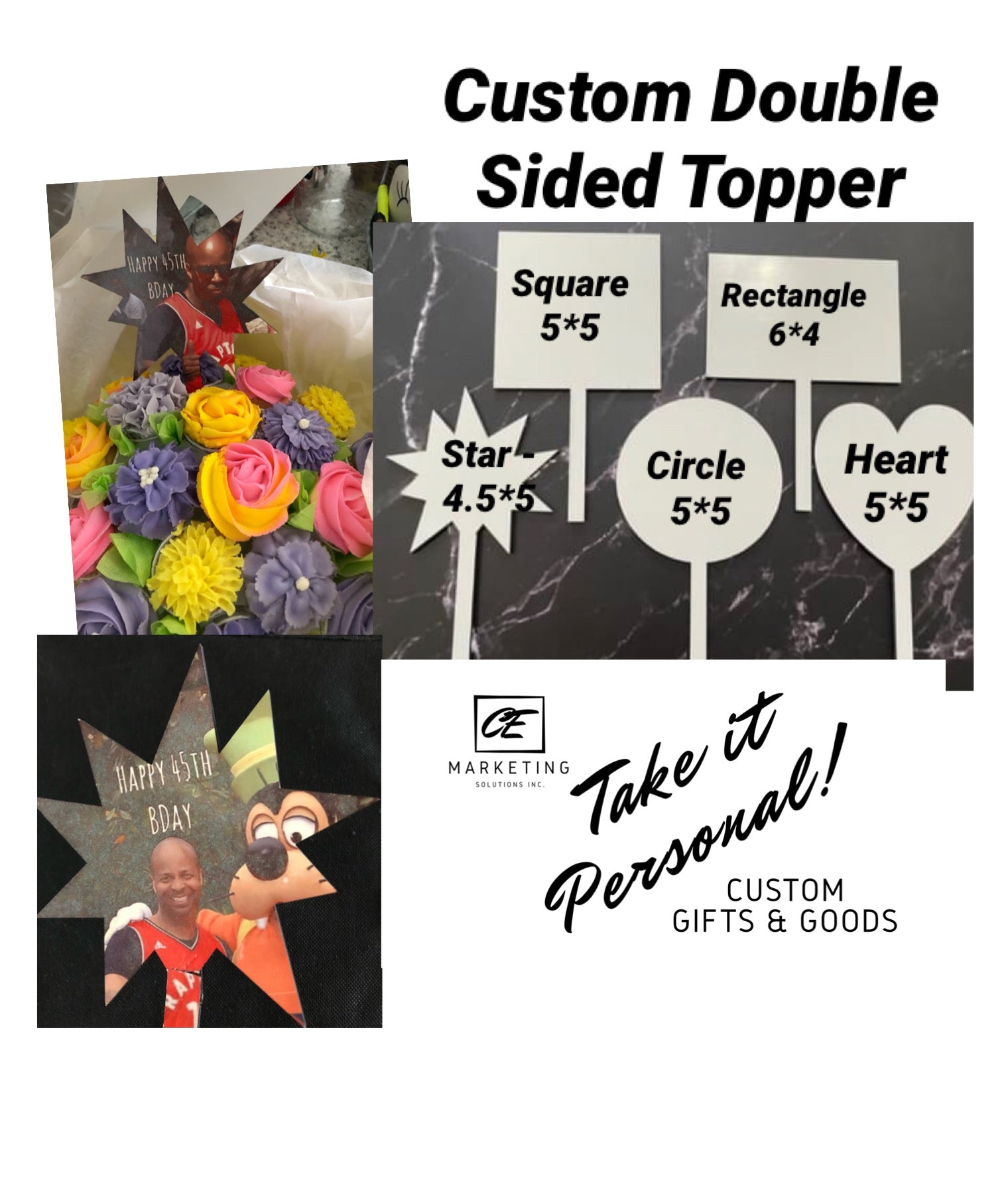 Custom Double Sided Cake Toppers